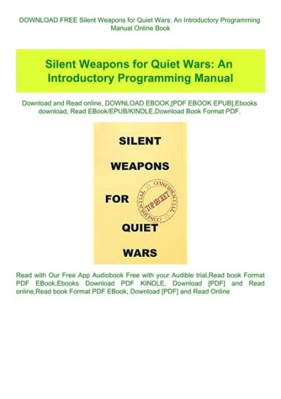 | File Name: Silent Weapons For Quiet Wars An Introductory Programming Manual .pdf Size: 7383 KB Type: PDF, ePub, eBook |